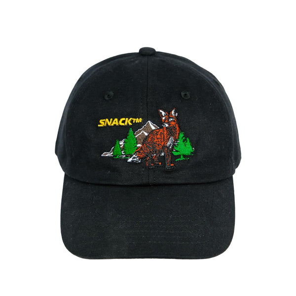 6 panel waxed canvas hat with embroidered front and rear graphics.